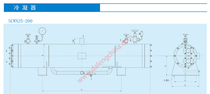 冷凝器是船用制冷系统中的一种主要热交换设备。高温高压的制冷剂蒸气通过换热管被海水冷却为冷液体。冷凝器换热管采用高效管,提高了换热效率,热负荷不变的情况下,外形尺寸大幅度缩小,单机重量显著减轻,提高了有限的船舱空间的有效利用率。 |