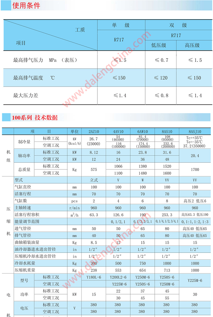 该系列压缩机在冷凝温度≤40℃,蒸发温度单级+5℃~-30℃,双级-25℃~-45℃的范围内,应用于需要实现人工制冷的场合。如石油、化工、制药等工业产品的生产, 食品的低温加工储藏和运输,工厂、医院及公众场所等大型建筑的空气调节等。