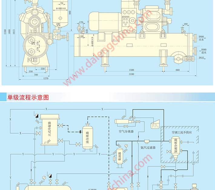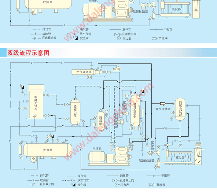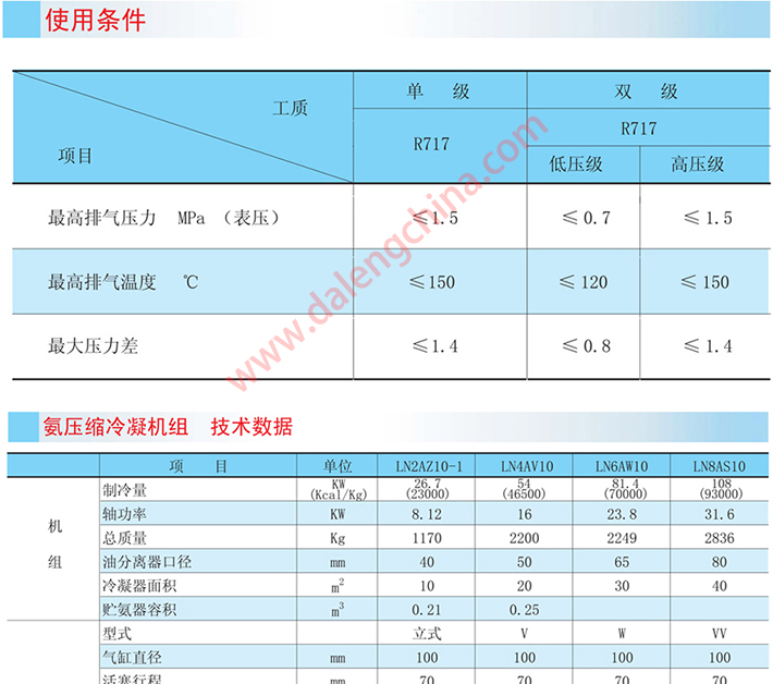 该系列压缩机在冷凝温度≤40℃,蒸发温度单级+5℃~-30℃,双级-25℃~-45℃的范围内,应用于需要实现人工制冷的场合。如石油、化工、制药等工业产品的生产, 食品的低温加工储藏和运输,工厂、医院及公众场所等大型建筑的空气调节等。