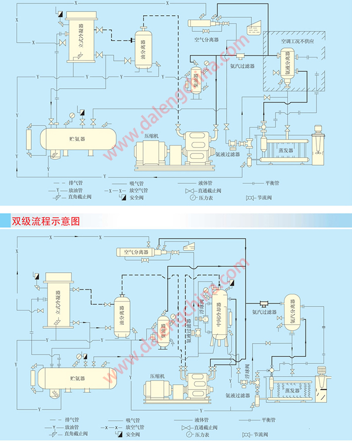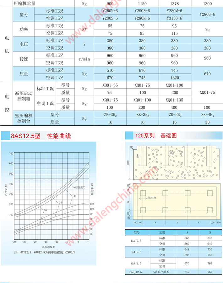 该系列压缩机在冷凝温度≤40℃,蒸发温度单级+5℃~-30℃,双级-25℃~-45℃的范围内,应用于需要实现人工制冷的场合。如石油、化工、制药等工业产品的生产, 食品的低温加工储藏和运输,工厂、医院及公众场所等大型建筑的空气调节等。