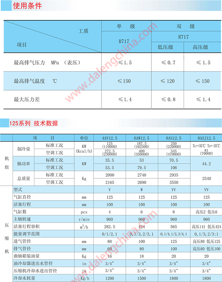 该系列压缩机在冷凝温度≤40℃,蒸发温度单级+5℃~-30℃,双级-25℃~-45℃的范围内,应用于需要实现人工制冷的场合。如石油、化工、制药等工业产品的生产, 食品的低温加工储藏和运输,工厂、医院及公众场所等大型建筑的空气调节等。