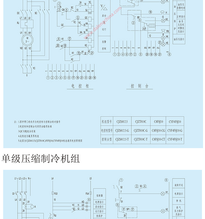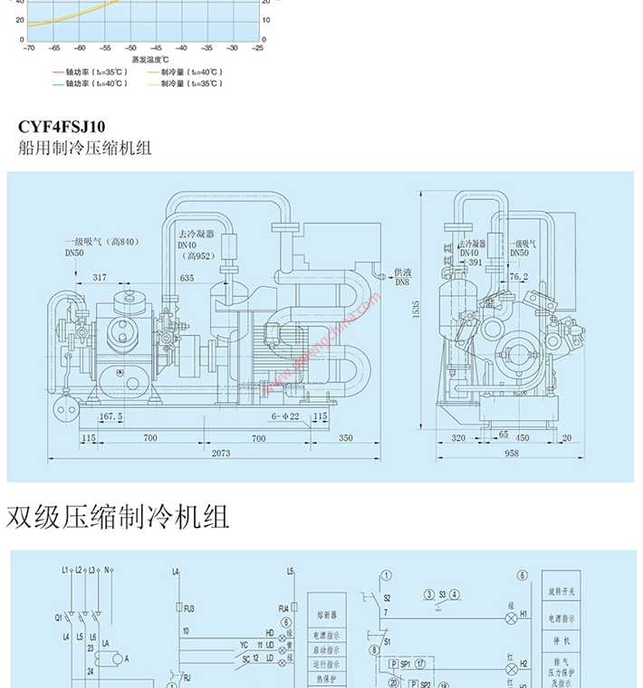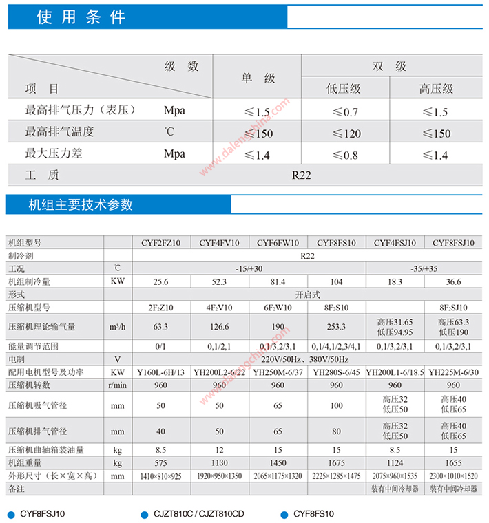船用活塞式制冷压缩机组中的压缩机有单级、单机双级两种机型,均属高速、多缸、逆流式压缩机,设有能量调节装置,可实现无负荷启动,压缩机还设有装放油阀,可在运转中加油。压缩机组由压缩机、电动机、控制台等组成,其中,单机双级机型还设有中间冷却器。所有机组均设有高效油分离器和自动回油装置。这些部件均安装在同一公共机座上。控制台上装有高、中压、油压继电器,保护机器运行安全可靠。船用机组均经摇摆台试验,可确保在航行中的可靠运行 |