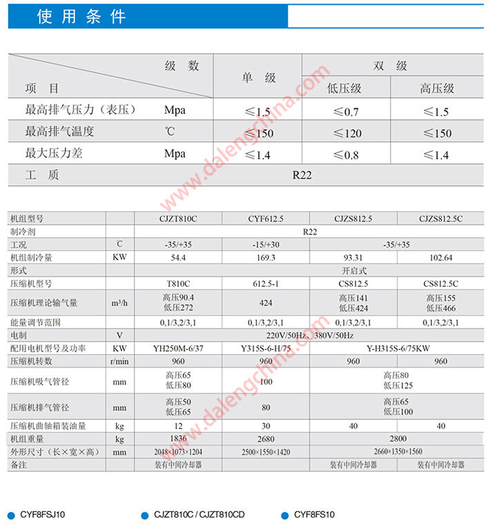 船用活塞式制冷压缩机在冷凝温度≤40℃,蒸发温度单级在+5℃至-30℃、双级在-25℃至-45℃的范围内应用于船上的食品低温加工、冷藏运输及船上的空气调节。